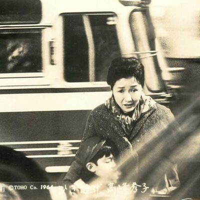 交通戦争という言葉で思い出すのは、成瀬己喜男監督の映画『ひき逃げ』(66年)。ラストシーン、子供の手をひき、狂ったように横断旗を振る高峰秀子の凄まじい演技は、まさに戦場におけるものだ。